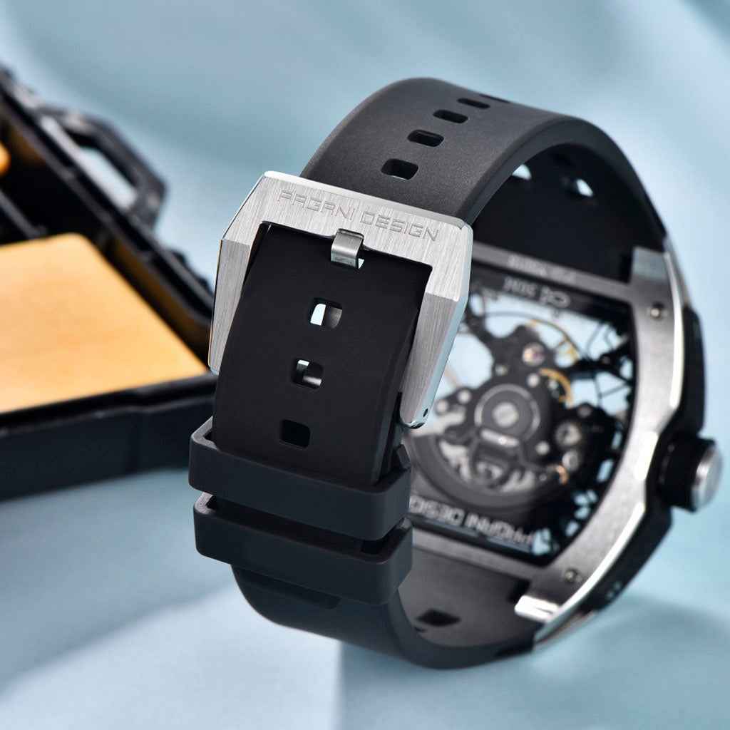 The Pagani Design Birmingham Sky Silver strap is carefully crafted using premium materials, offering the full durability and lightness of FKM rubber. It provides unparalleled comfort and a unique sensation of wearing a watch that feels almost imperceptible on the wrist.