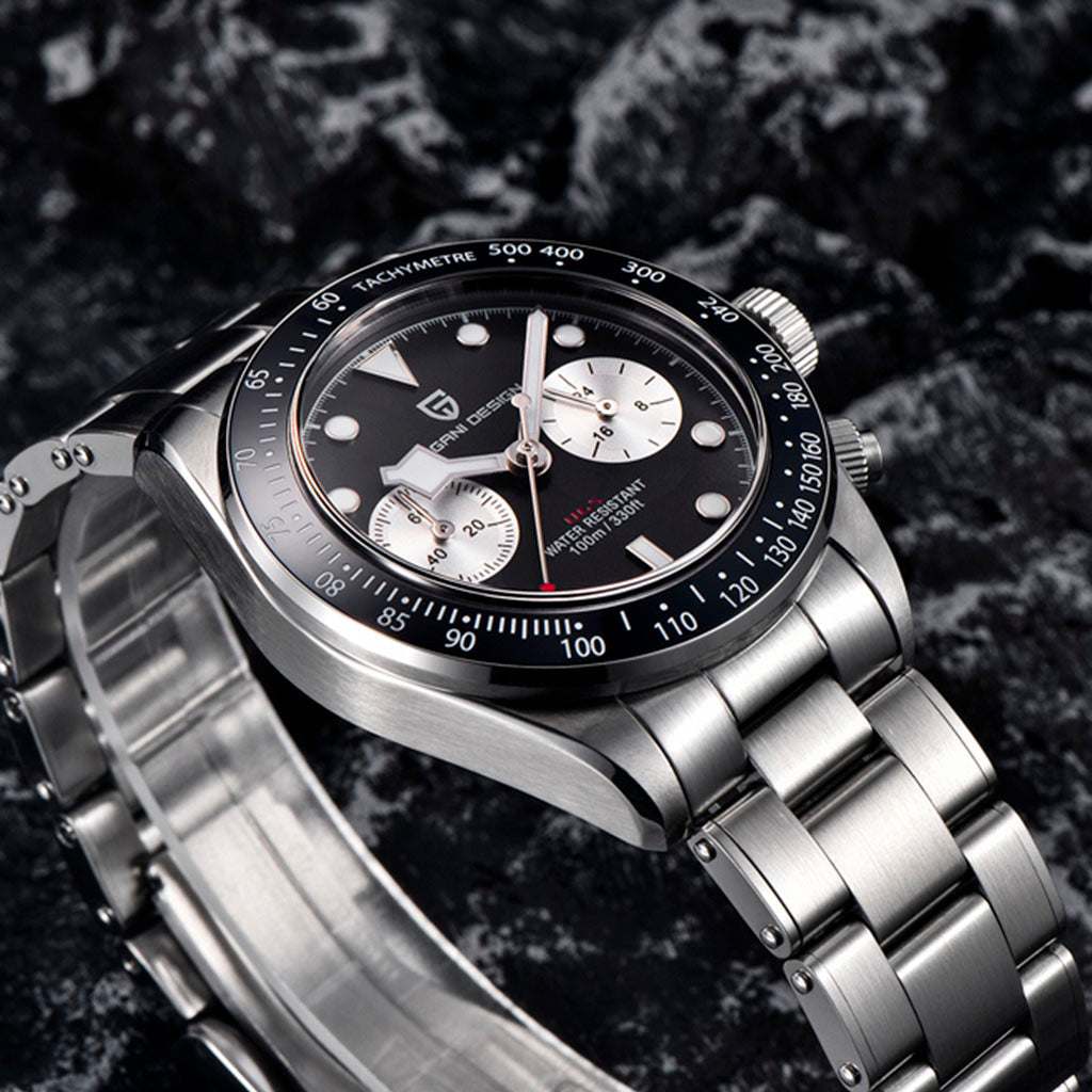O movimento Seiko VK34 é conhecido por seu desempenho excepcional em termos de precisão e confiabilidade. O Pagani Design Dash Black equipado com o movimento VK34, oferece precisão e funcionalidade superiores.
