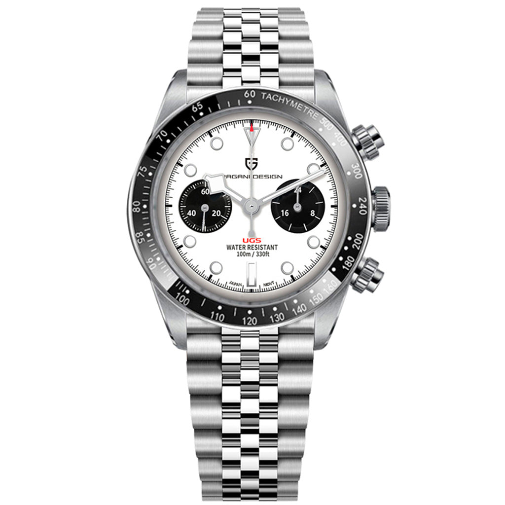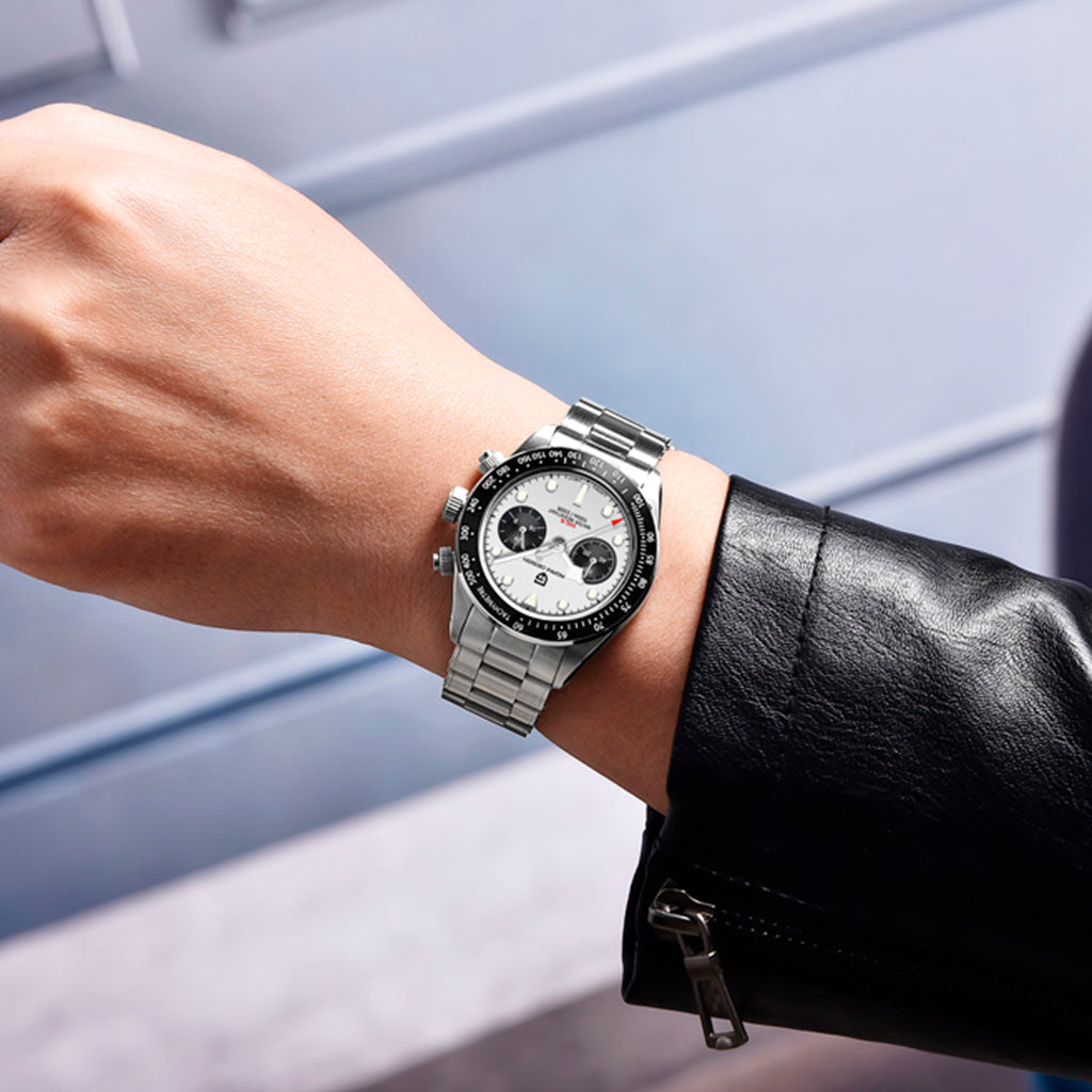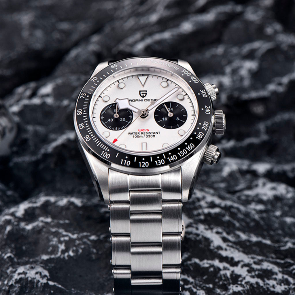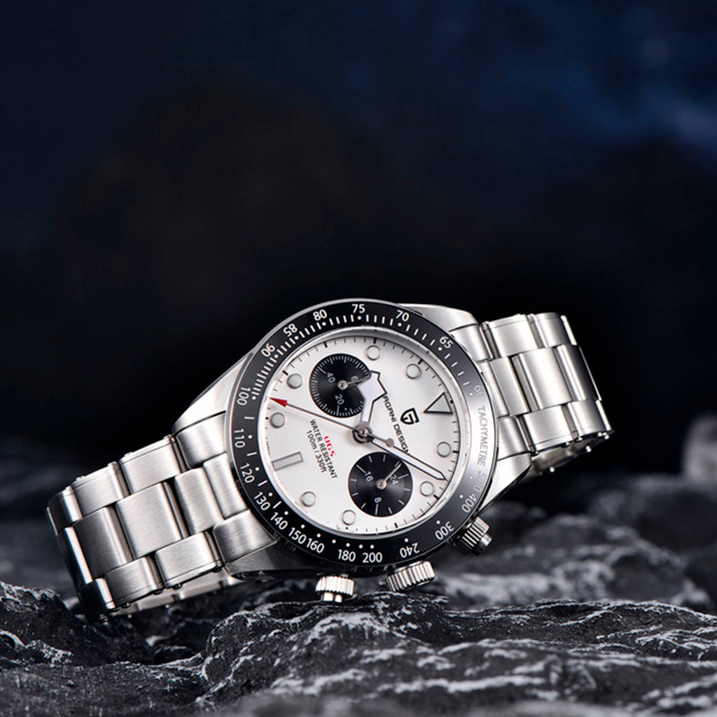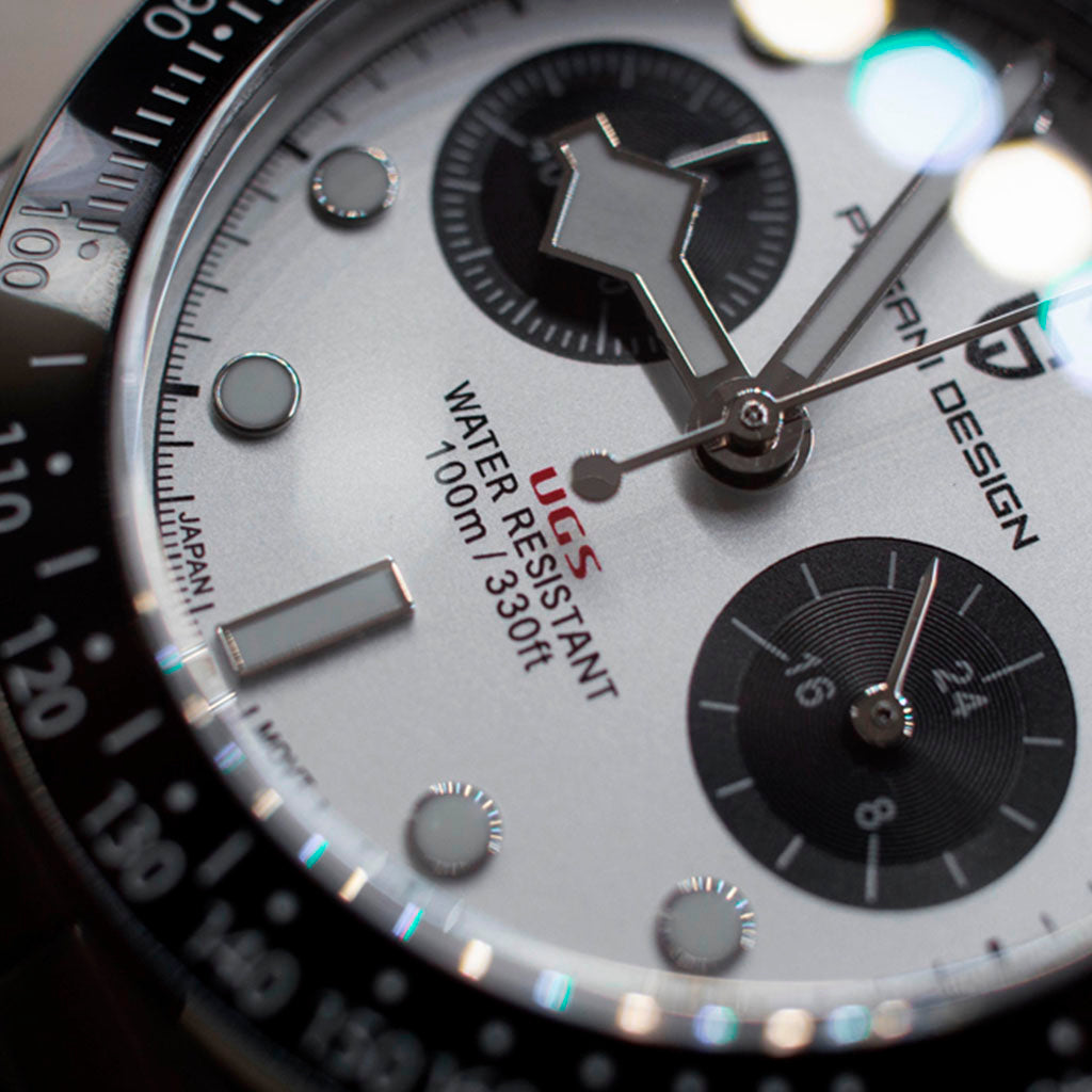 O movimento Seiko VK34 é conhecido por seu desempenho excepcional em termos de precisão e confiabilidade. O Pagani Design Dash White equipado com o movimento VK34, oferece precisão e funcionalidade superiores.