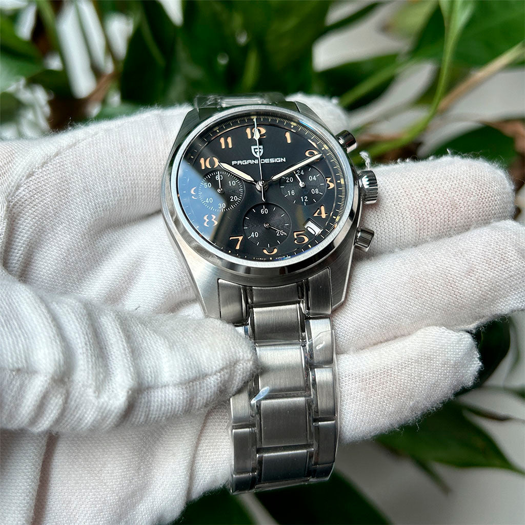 O movimento Seiko VK63 é conhecido por seu desempenho excepcional em termos de precisão e confiabilidade. O Pagani Design Dresden Black equipado com o movimento VK63, possui uma operação suave e precisa do cronógrafo.