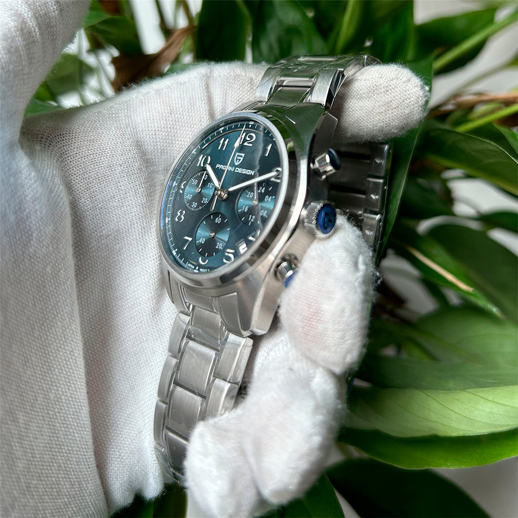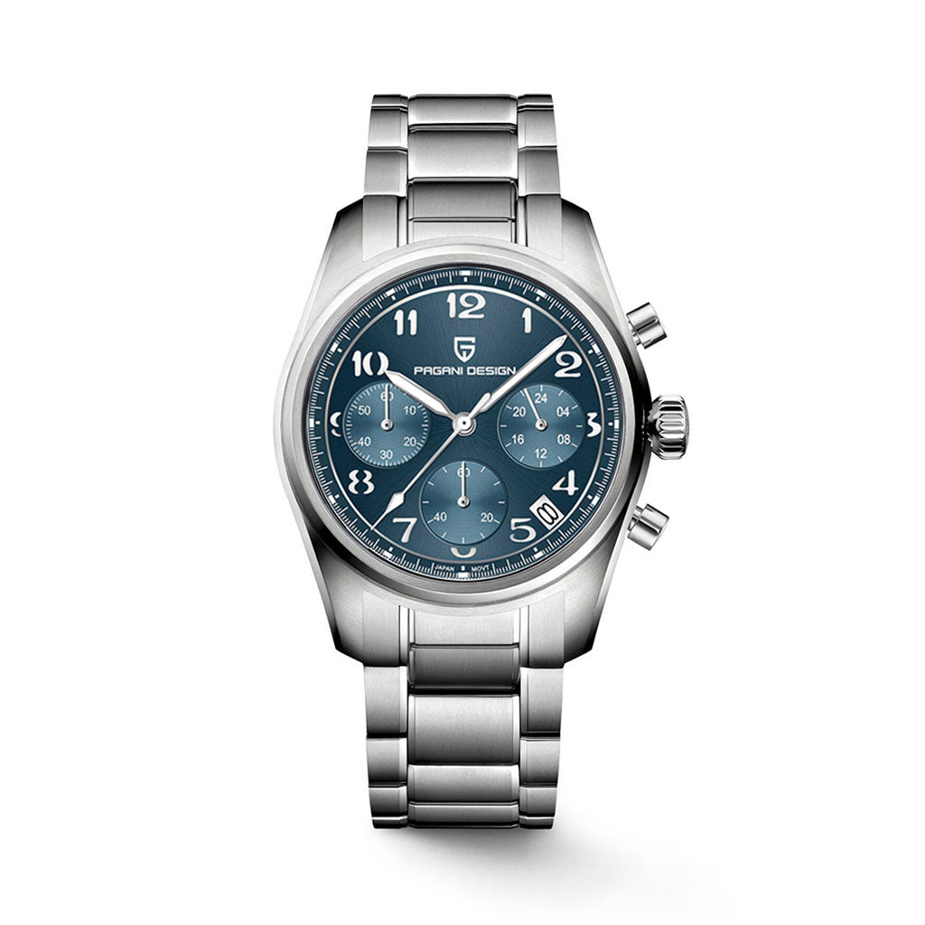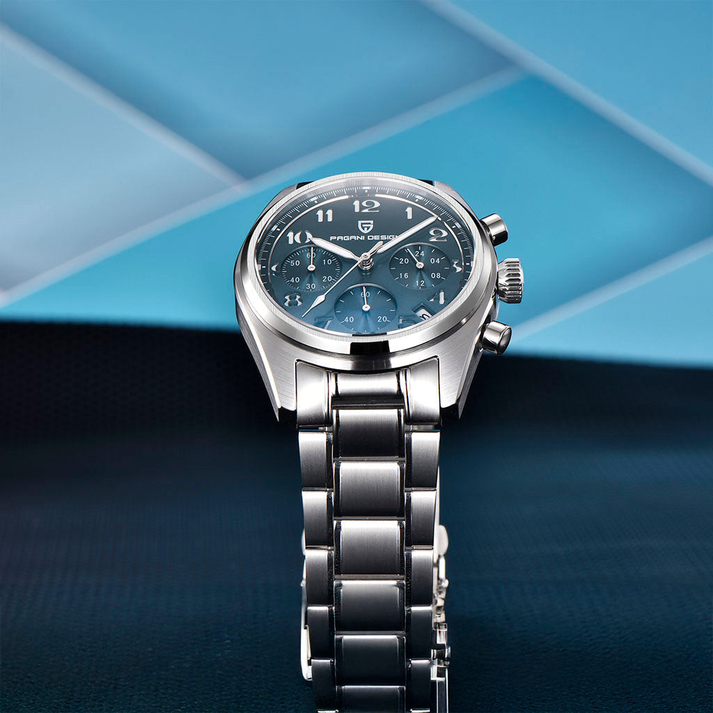 O movimento Seiko VK63 é conhecido por seu desempenho excepcional em termos de precisão e confiabilidade. O Pagani Design Dresden Blue equipado com o movimento VK63, possui uma operação suave e precisa do cronógrafo.