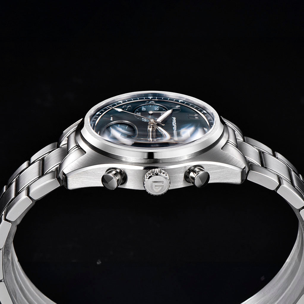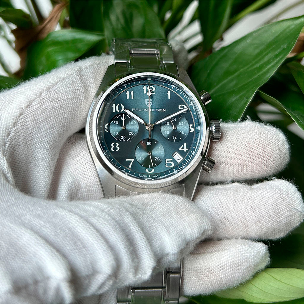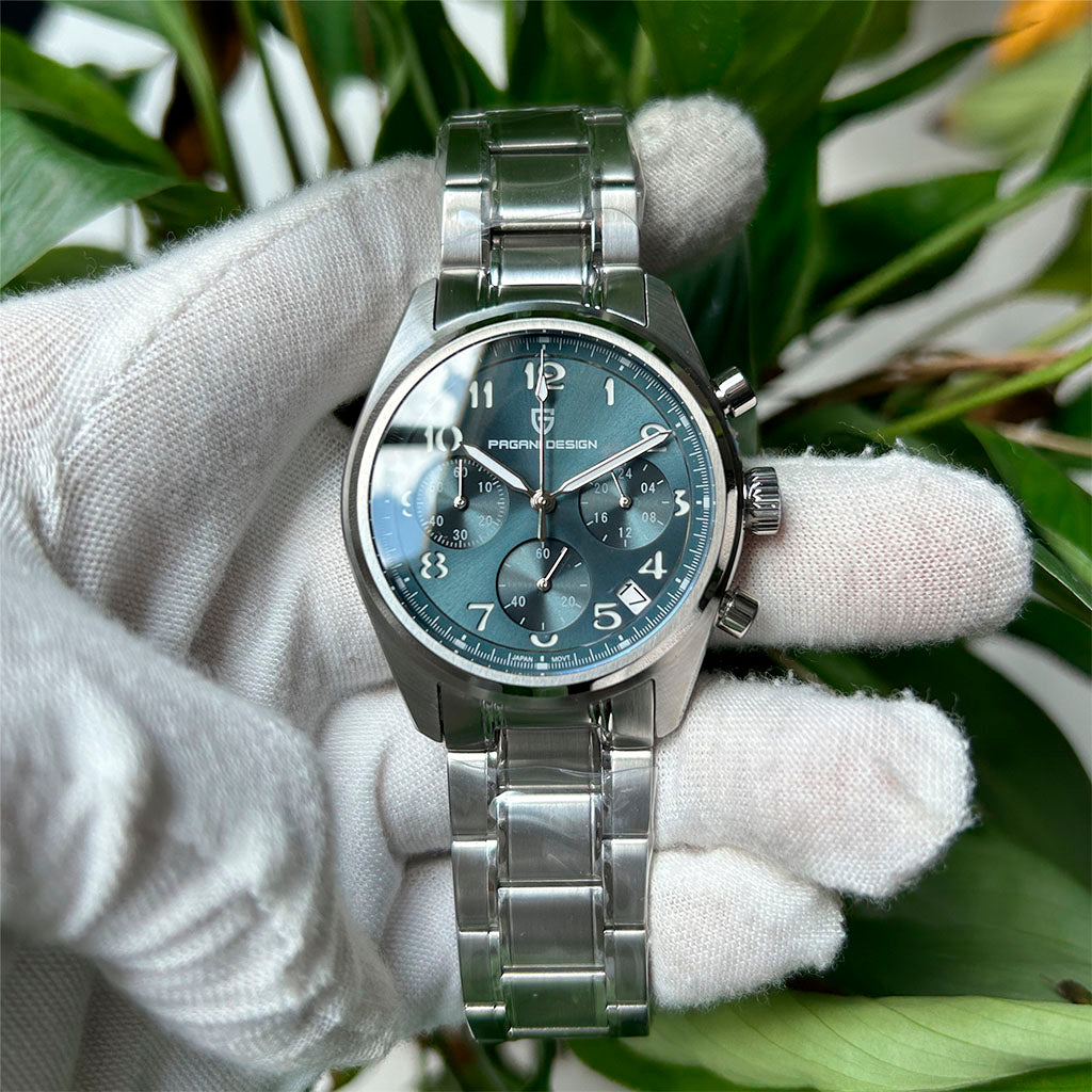 O movimento Seiko VK63 é conhecido por seu desempenho excepcional em termos de precisão e confiabilidade. O Pagani Design Dresden Blue equipado com o movimento VK63, possui uma operação suave e precisa do cronógrafo.
