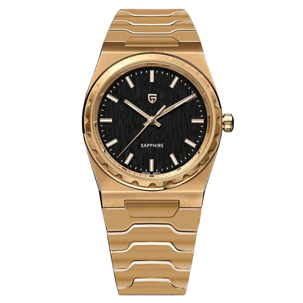 O mecanismo Seiko TMI VJ21 é um movimento de quartzo de alta precisão, conhecido por seu desempenho excepcional em termos de precisão e confiabilidade. O Pagani Design Drift Gold Black equipado com o movimento TMI VJ21, oferece uma precisão e confiabilidade excepcionais.