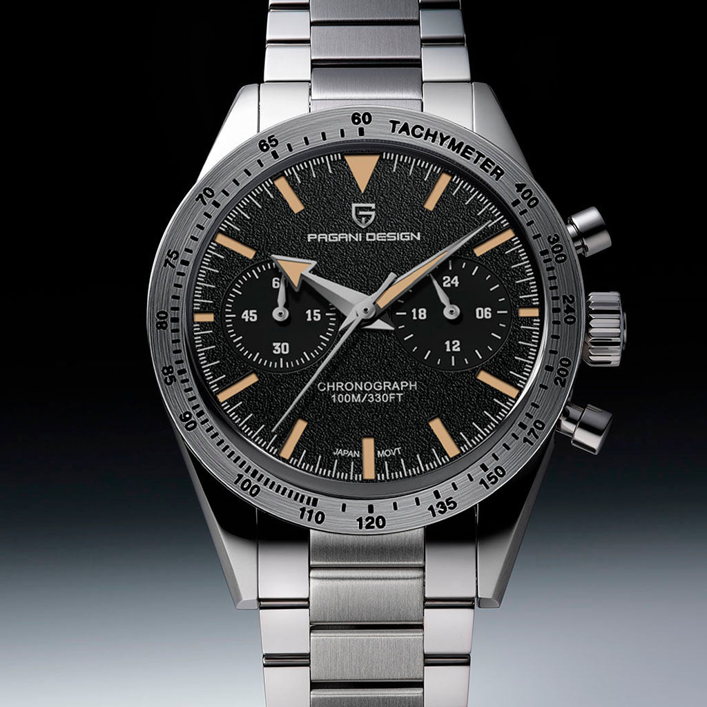 O movimento Seiko VK64 é conhecido por seu desempenho excepcional em termos de precisão e confiabilidade. O Pagani Pagani Design Drive Black equipado com o movimento VK64, possui uma operação suave e precisa do cronógrafo.
