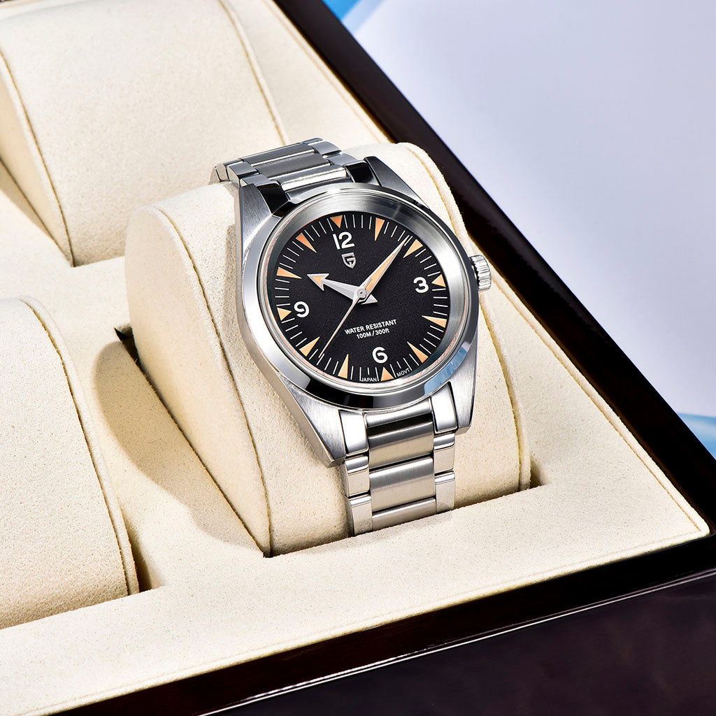 O mecanismo Seiko VH31 é um movimento de quartzo de alta precisão, conhecido por seu desempenho excepcional em termos de precisão e confiabilidade. O Pagani Design Fusion Black equipado com o movimento VH31, oferece uma precisão e confiabilidade excepcionais.