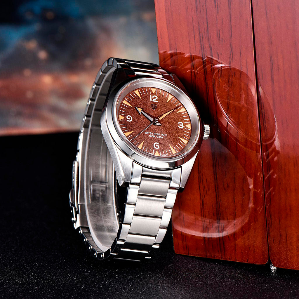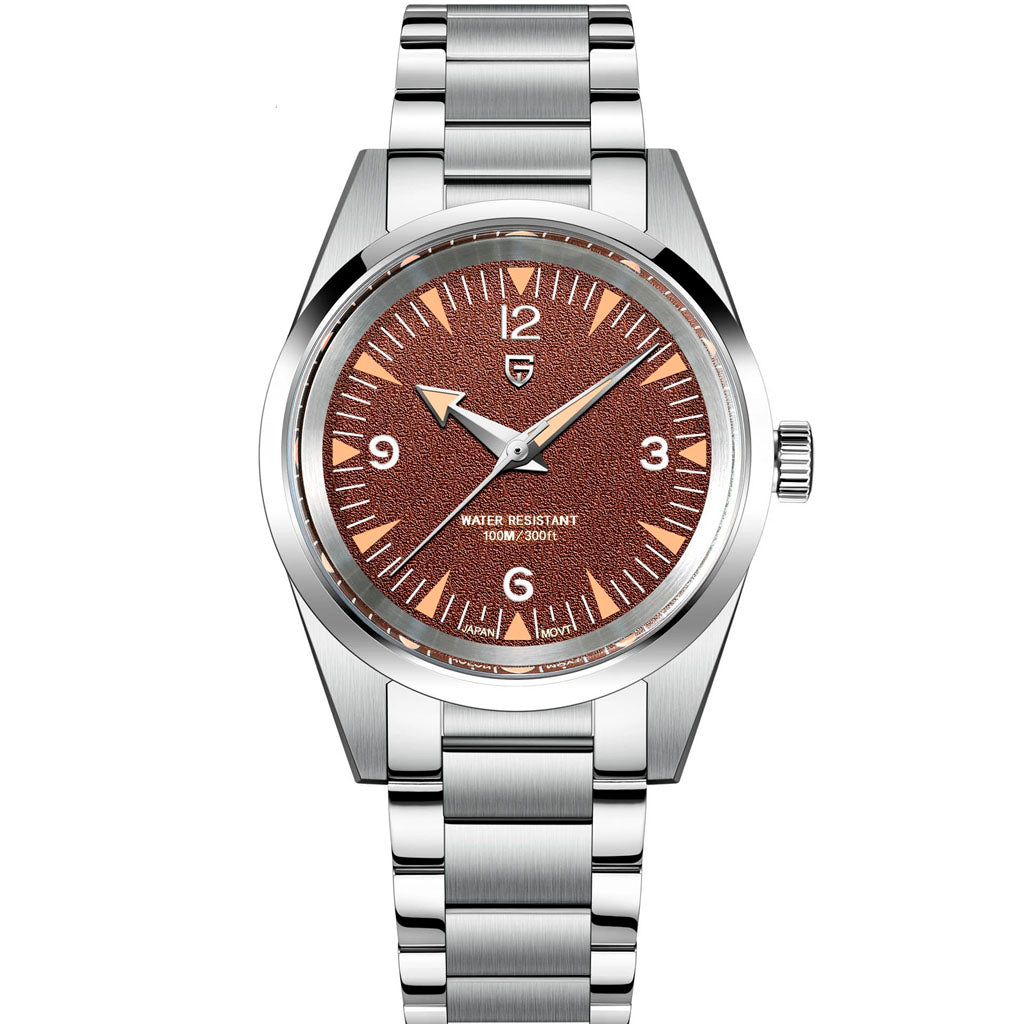 O mecanismo Seiko VH31 é um movimento de quartzo de alta precisão, conhecido por seu desempenho excepcional em termos de precisão e confiabilidade. O Pagani Design Fusion Brown equipado com o movimento VH31, oferece uma precisão e confiabilidade excepcionais.