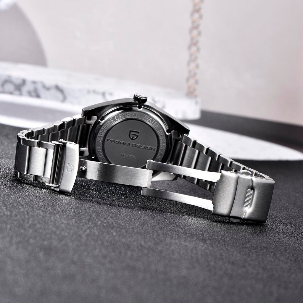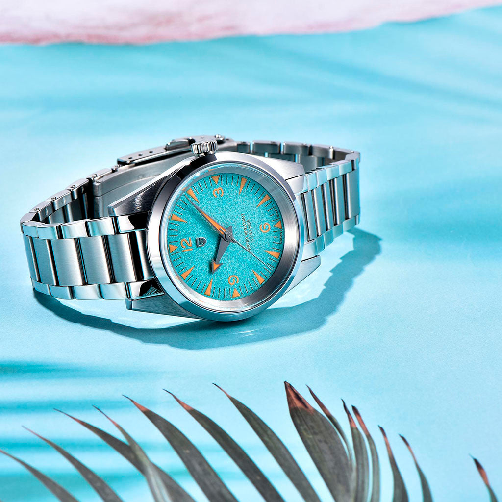 A pulseira do Pagani Design Fusion Turquoise é cuidadosamente projetada com materiais premium, combinando a elegância e a resistência do aço 316L. Proporciona um conforto incomparável e uma sensação única de estar usando um relógio quase imperceptível no pulso.