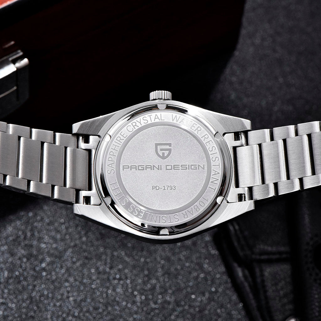 O mecanismo Seiko VH31 é um movimento de quartzo de alta precisão, conhecido por seu desempenho excepcional em termos de precisão e confiabilidade. O Pagani Design Fusion Turquoise equipado com o movimento VH31, oferece uma precisão e confiabilidade excepcionais.