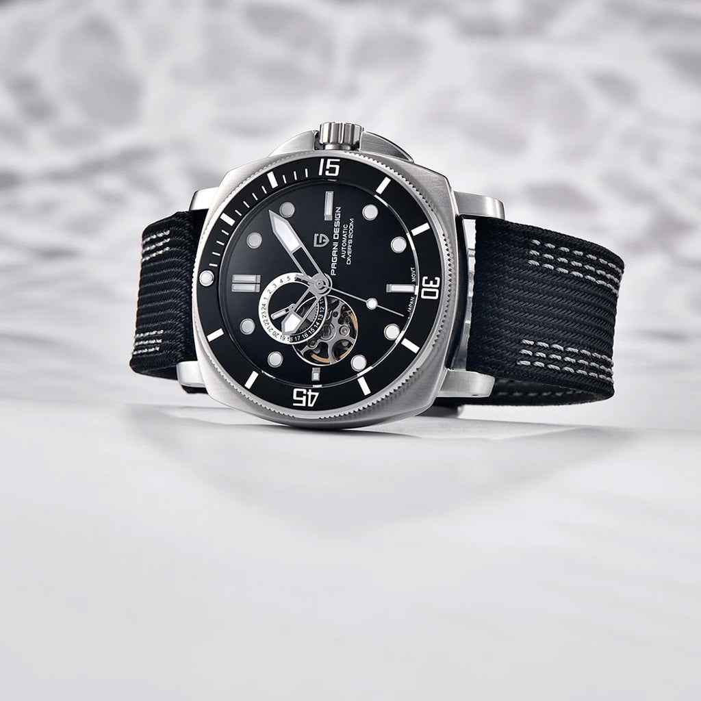 The Seiko NH39A movement is an enhanced version of the Seiko NH35, renowned for its exceptional performance in terms of precision and reliability. The Pagani Design Infinity Black, powered by the NH39A movement, features an impressive power reserve of approximately 45 hours.