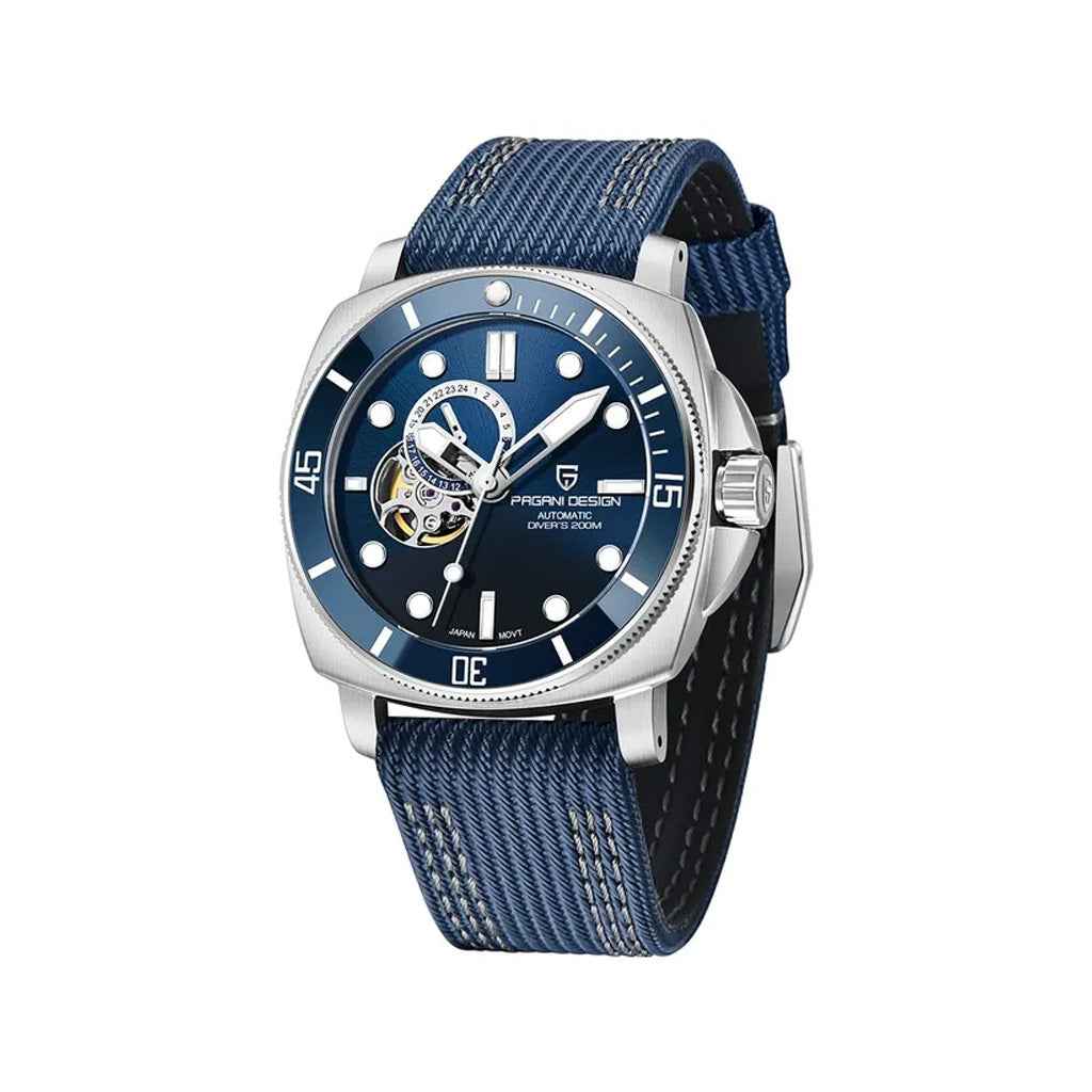 O movimento Seiko NH39A é uma versão aprimorada do Seiko NH35, conhecido por seu desempenho excepcional em termos de precisão e confiabilidade. O Pagani Design Infinity Blue, equipado com o movimento NH39A, possui uma impressionante reserva de marcha de aproximadamente 45 horas.