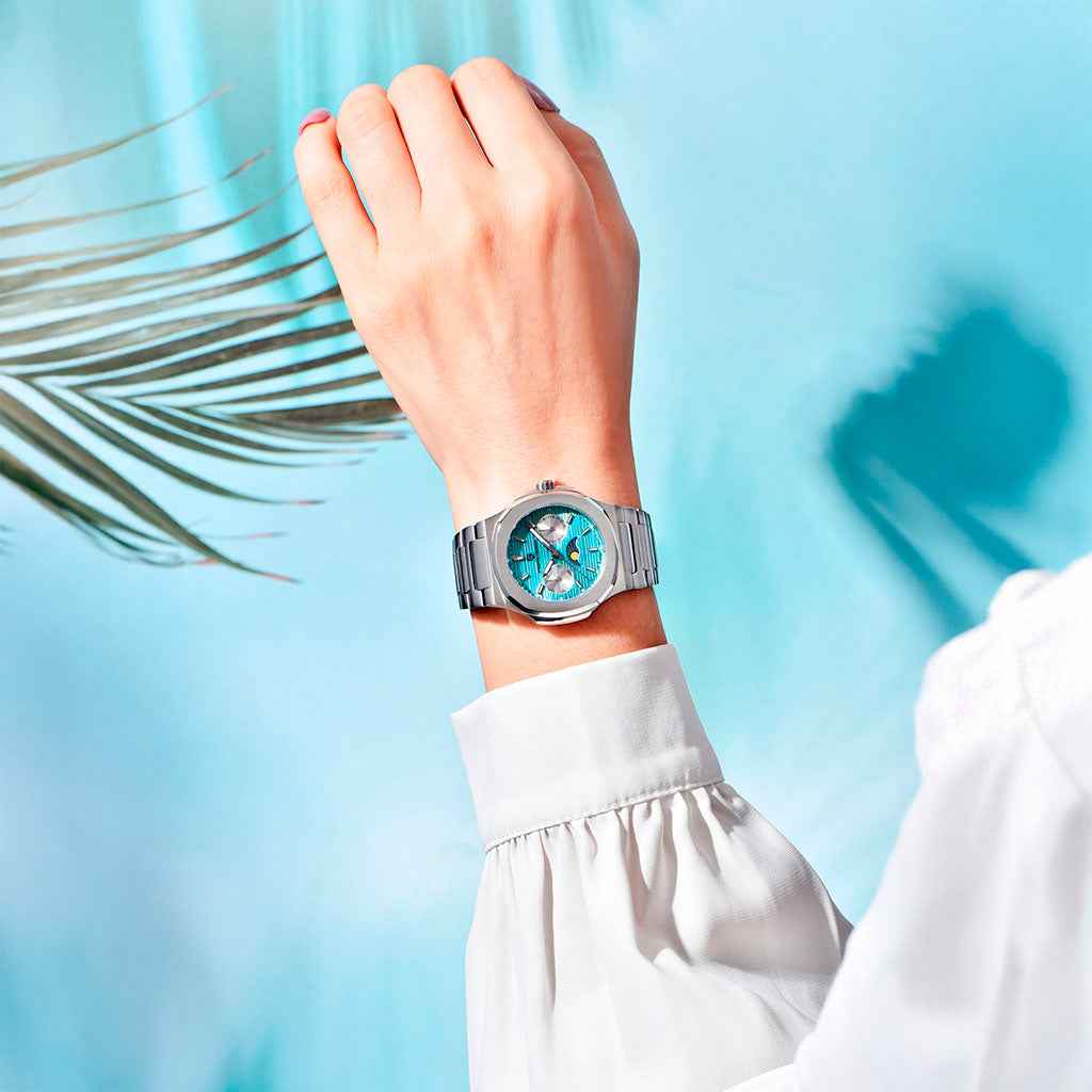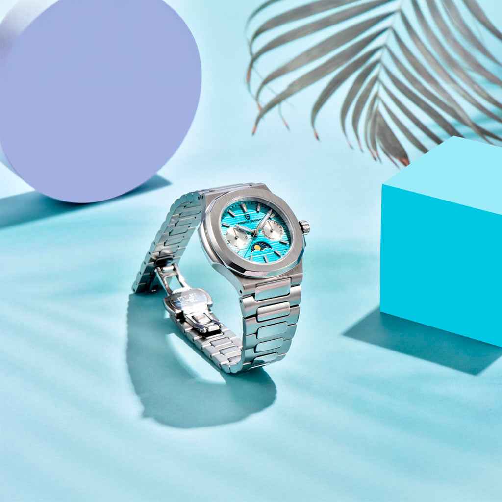 The Pagani Design Le Mans Blue is crafted from 316L stainless steel, a hypoallergenic material highly resistant to corrosion, delivering exceptional strength, shine, and durability.