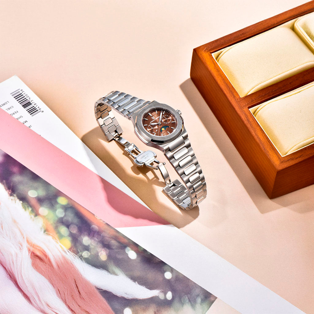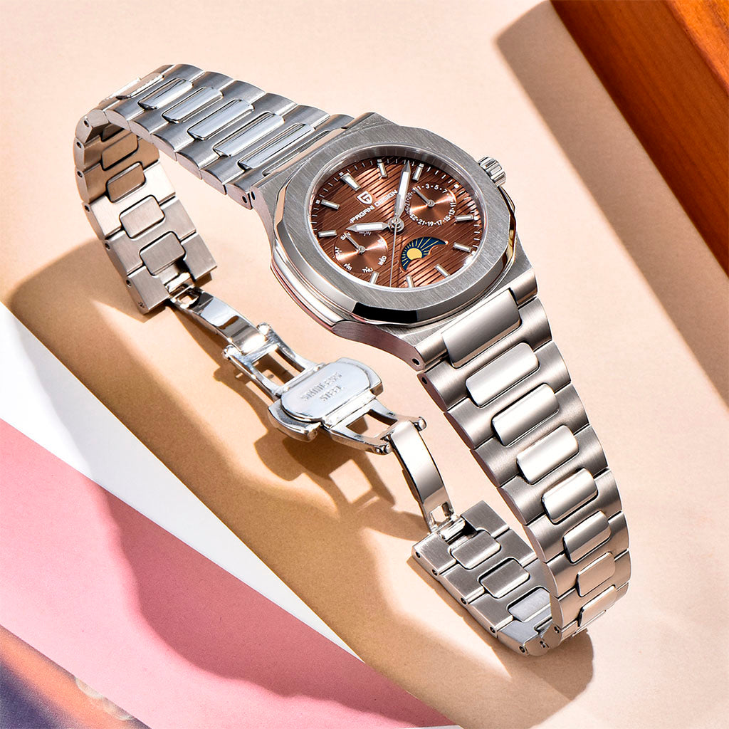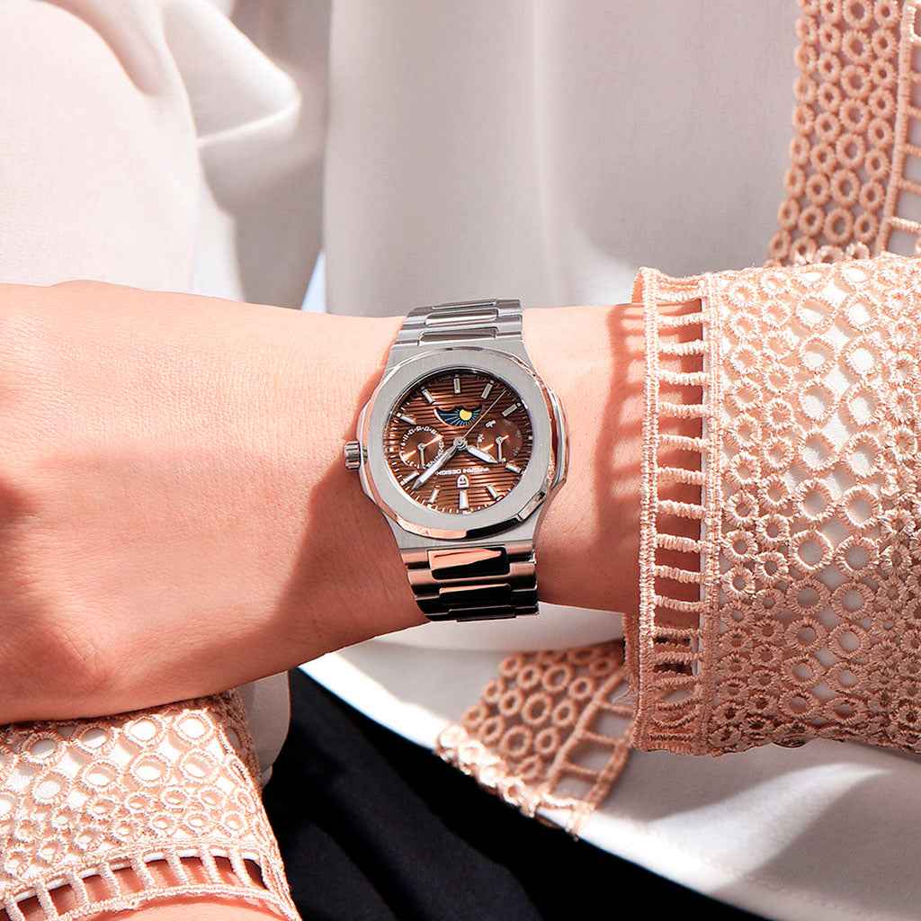 The Pagani Design Le Mans Brown is crafted from 316L stainless steel, a hypoallergenic material highly resistant to corrosion, delivering exceptional strength, shine, and durability.