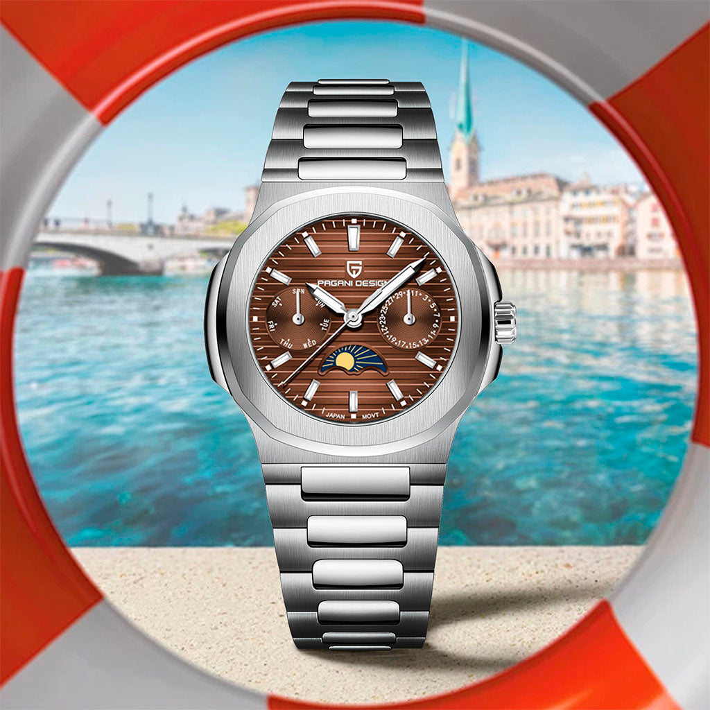 Purchase your Pagani Design Le Mans Brown from our website and receive our exclusive packaging. This watch is the perfect choice for those seeking quality and sophistication. Invest in the Pagani Design Le Mans Brown and discover excellence in every detail.