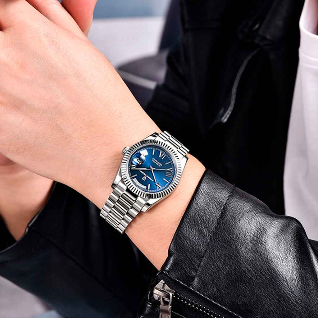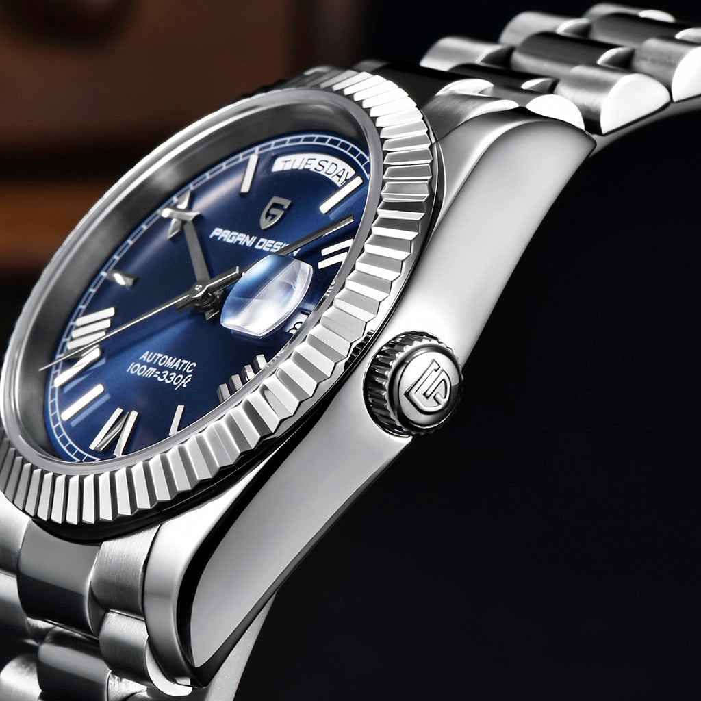 Purchase your Pagani Design London Blue from our website and receive our exclusive packaging. This watch is the perfect choice for those seeking quality and sophistication. Invest in the Pagani Design London Rose Gold and discover excellence in every detail.