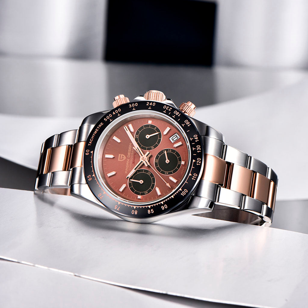 O movimento Seiko VK63 é conhecido por seu desempenho excepcional em termos de precisão e confiabilidade. O Pagani Design Lorenzo Copper equipado com o movimento VK63, possui uma operação suave e precisa do cronógrafo.