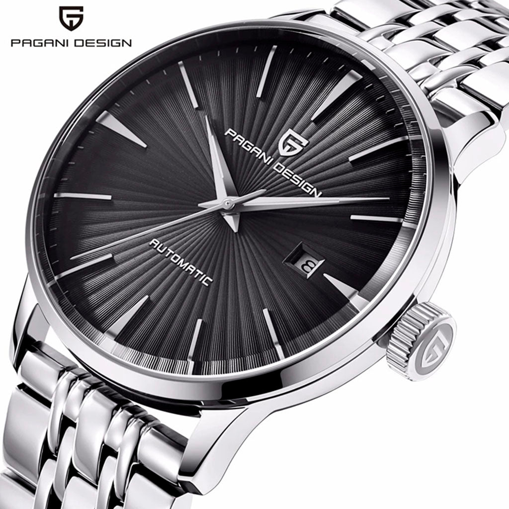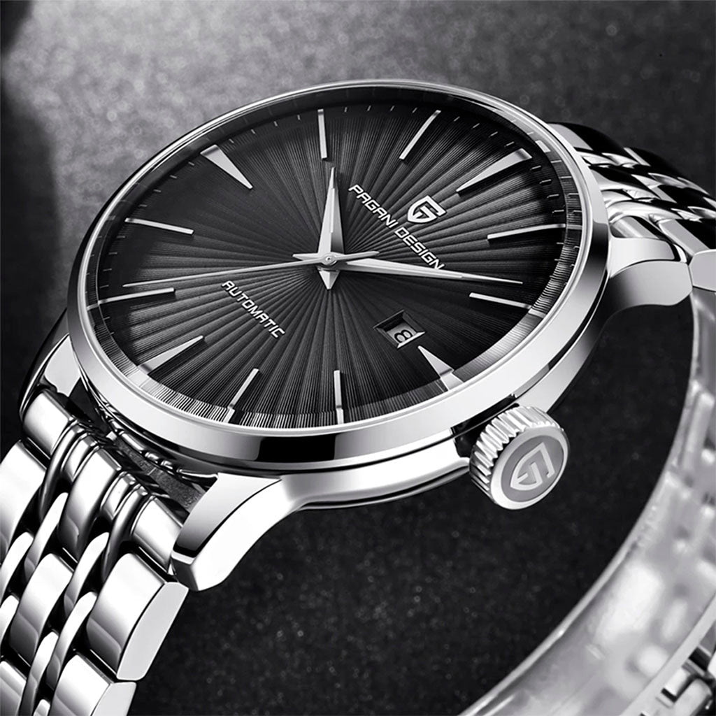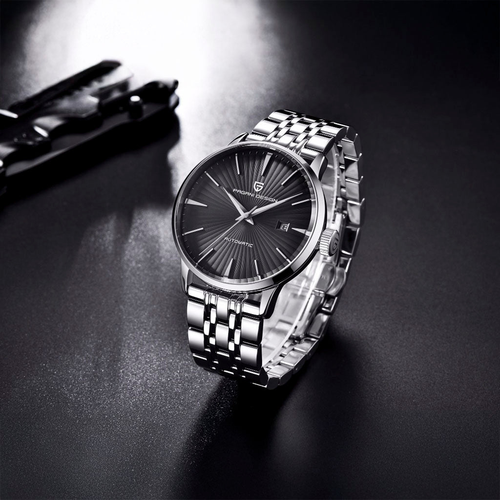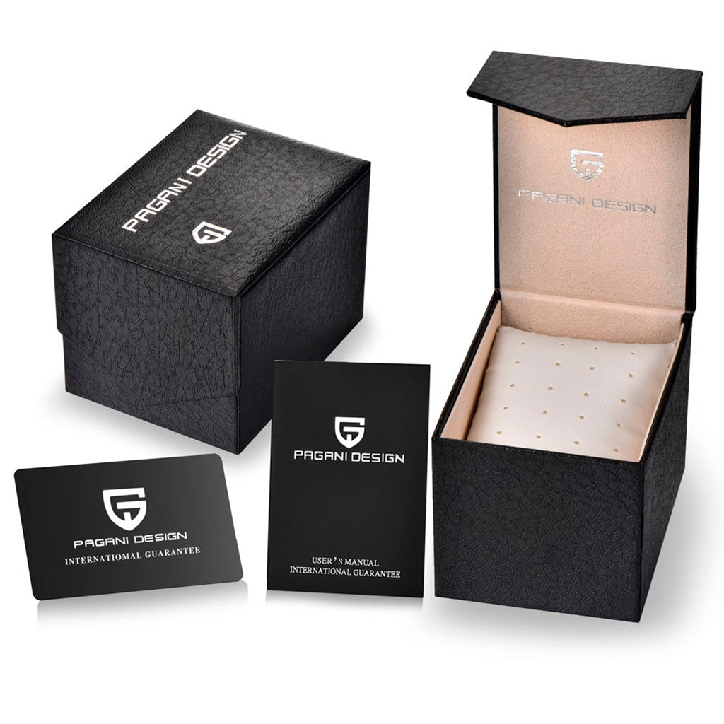 Purchase your Pagani Design Lugano Black from our website and receive our exclusive packaging. This watch is the perfect choice for those seeking quality and sophistication. Invest in the Pagani Design Lugano Black and discover excellence in every detail.