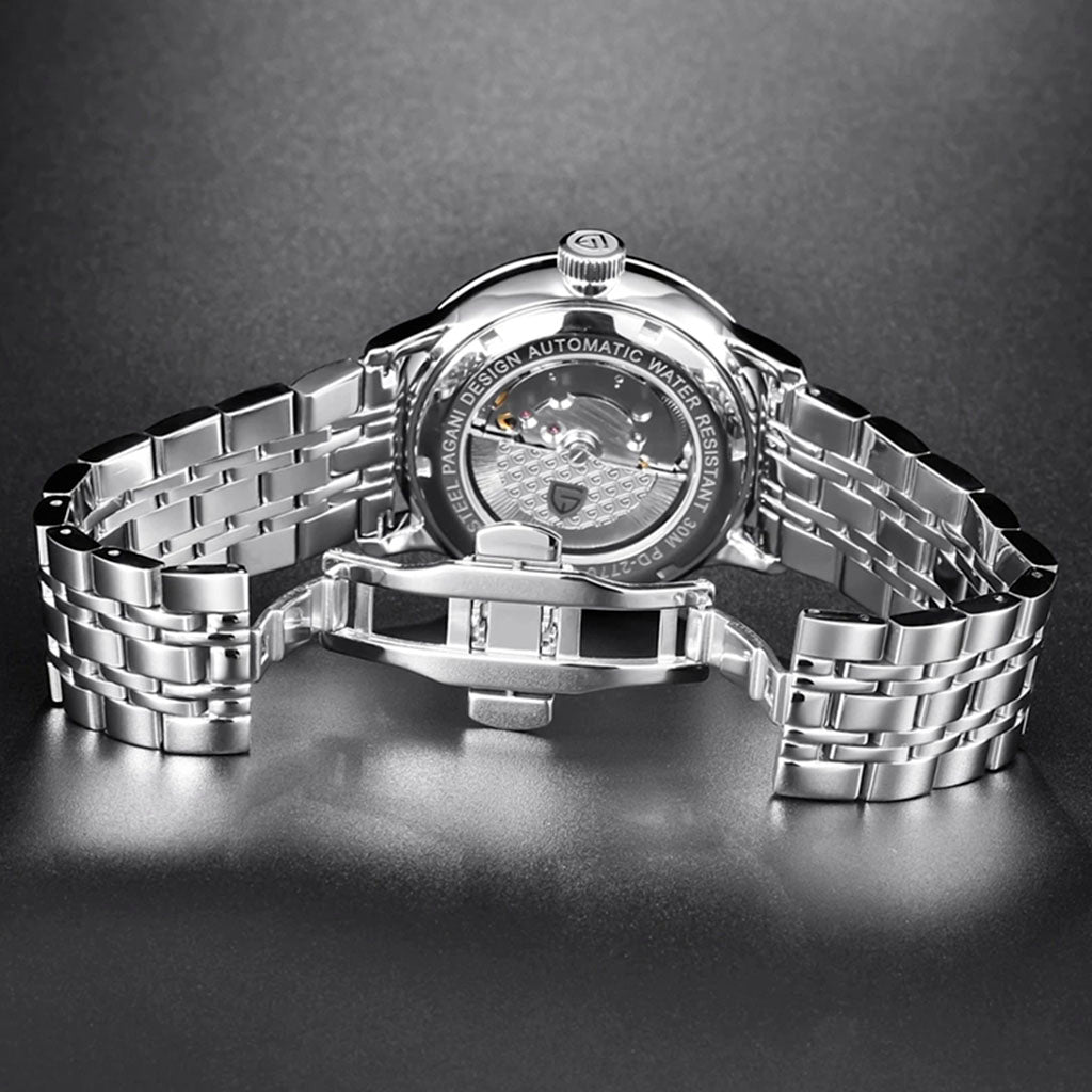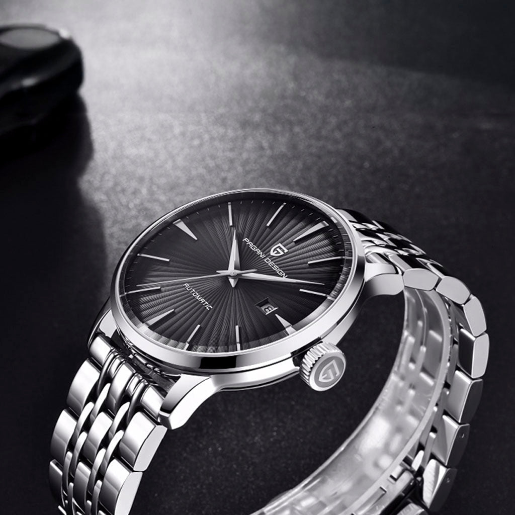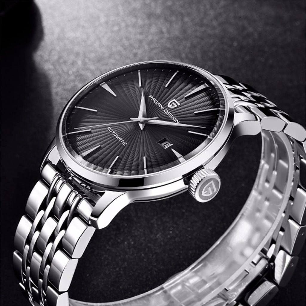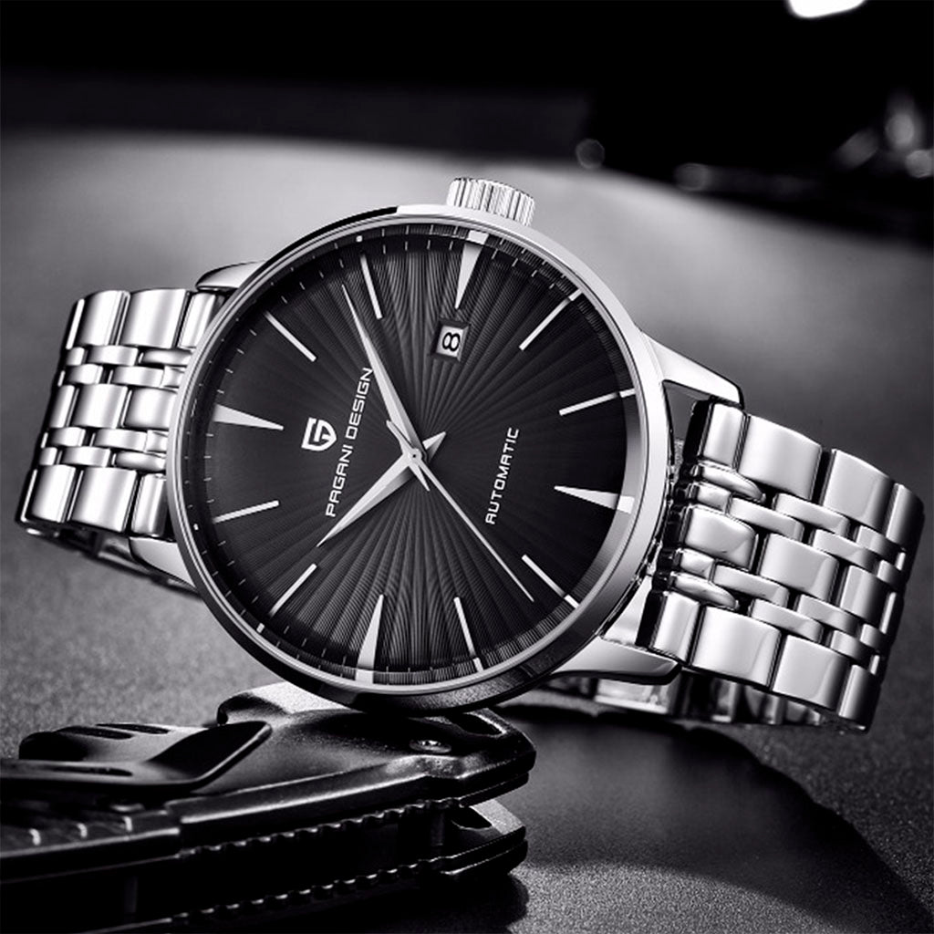 Purchase your Pagani Design Lugano Black from our website and receive our exclusive packaging. This watch is the perfect choice for those seeking quality and sophistication. Invest in the Pagani Design Lugano Black and discover excellence in every detail.