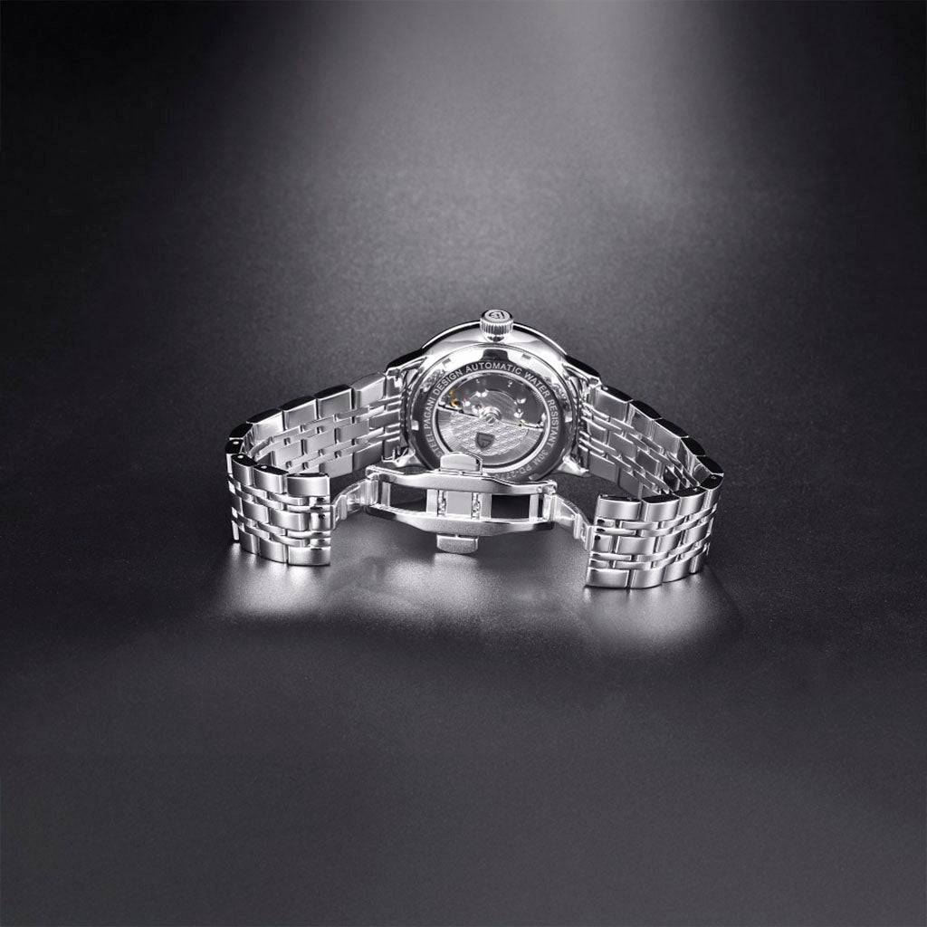 The Pagani Design Lugano bracelet is carefully crafted from 316L stainless steel, combining the strength of steel with a lightweight feel. It delivers unparalleled comfort and a unique sensation of wearing a watch that feels almost imperceptible on the wrist.