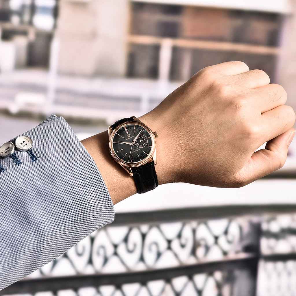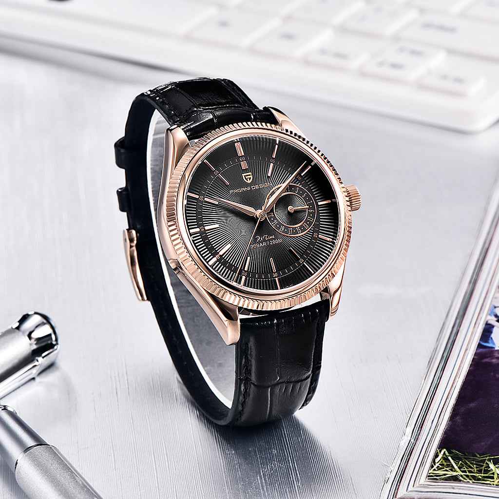 Purchase your Pagani Design Luzzago Black Gold from our website and receive our official packaging. This watch is the perfect choice for those seeking quality and sophistication. Invest in the Pagani Design Luzzago Black Gold and experience excellence in every detail.