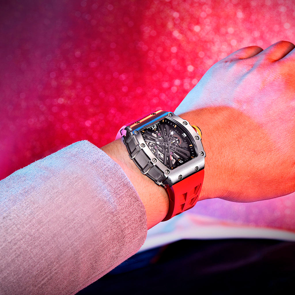 A pulseira do Pagani Design Monza Silver Red é cuidadosamente projetada com materiais premium, com toda a resistência e leveza do FKM. Proporciona um conforto incomparável e uma sensação única de estar usando um relógio quase imperceptível no pulso.