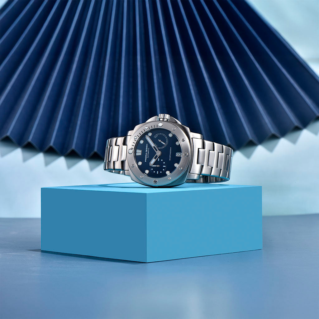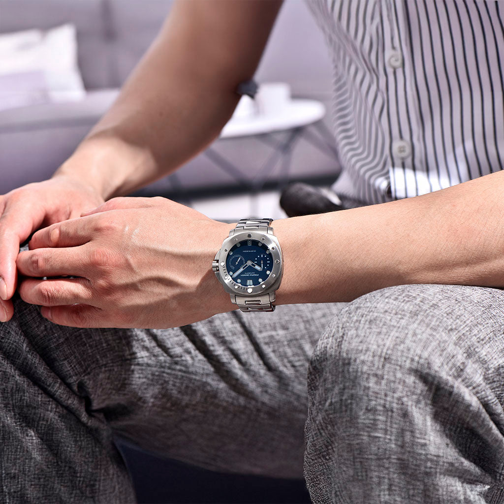 A pulseira do Pagani Design Numberg Blue City Edition é cuidadosamente projetada com materiais premium, combinando a resistência e a leveza do aço 316L. Proporciona um conforto incomparável e uma sensação única de estar usando um relógio quase imperceptível no pulso.