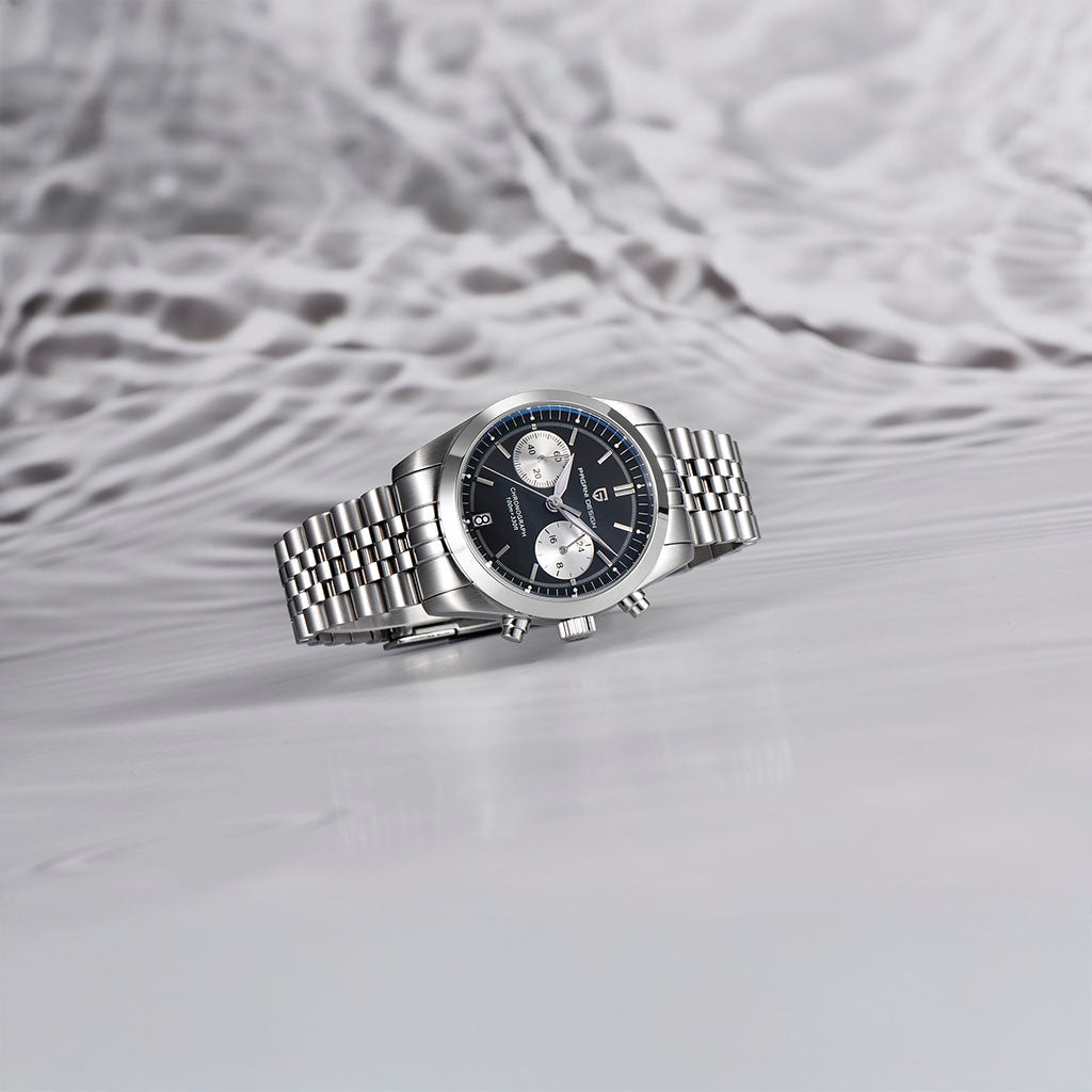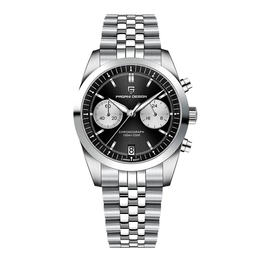 O movimento Seiko VK64 é conhecido por seu desempenho excepcional em termos de precisão e confiabilidade. O Pagani Design Pilot Black equipado com o movimento VK64, possui uma operação suave e precisa do cronógrafo.