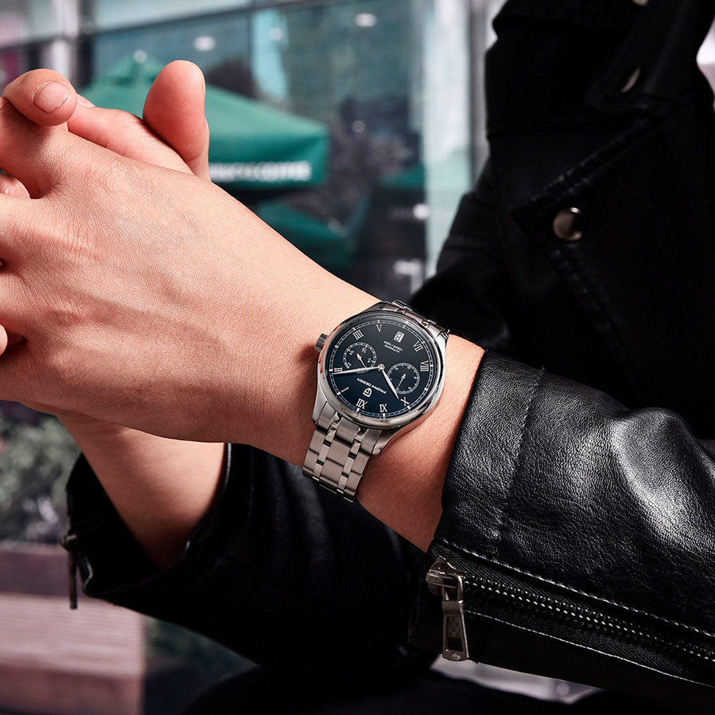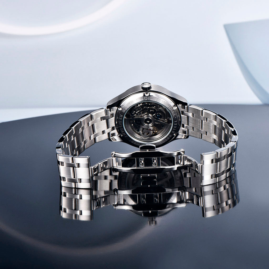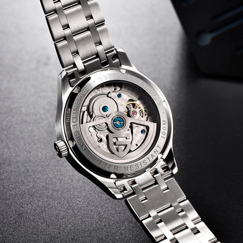 A pulseira do Pagani Design Roma Silver Black é cuidadosamente projetada com aço inoxidável 316L, combinando a resistência do aço e a leveza do material. Proporciona um conforto incomparável e uma sensação única de estar usando um relógio quase imperceptível no pulso.