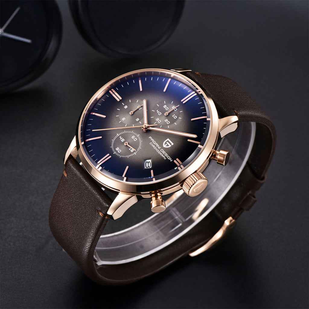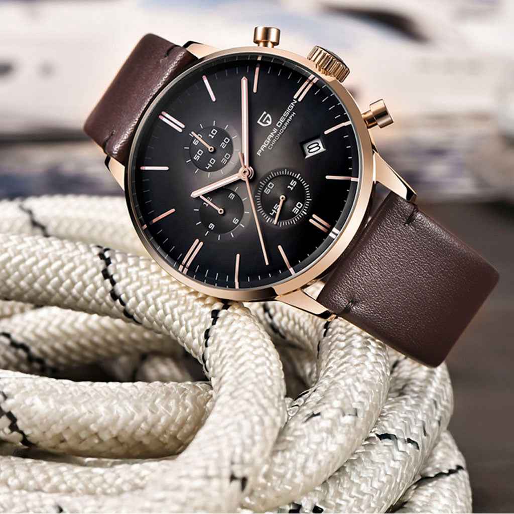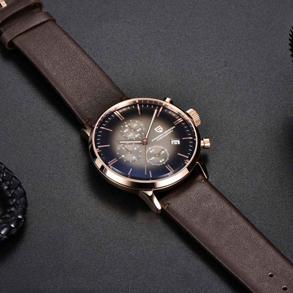 The Seiko VK67 is a high-precision quartz movement, renowned for its exceptional performance in terms of accuracy and reliability. The Pagani Design Rouen Black Gold Classic Edition, equipped with the VK67 movement, delivers outstanding precision and dependable performance.