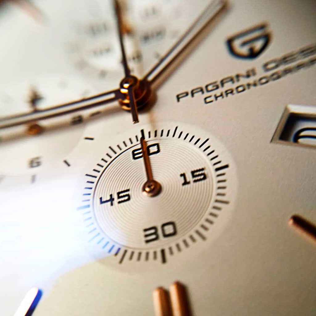 The Seiko VK67 is a high-precision quartz movement, renowned for its exceptional performance in terms of accuracy and reliability. The Pagani Design Rouen White Gold Classic Edition, equipped with the VK67 movement, delivers outstanding precision and dependable performance.