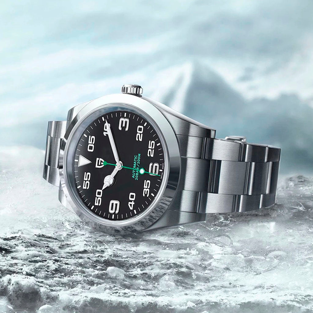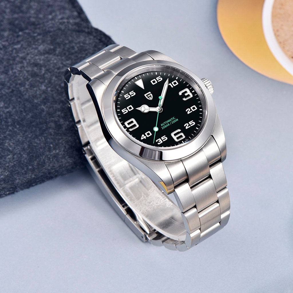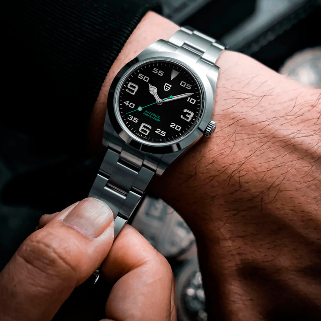O mecanismo Seiko NH35 é um movimento automático de alta precisão, conhecido por seu desempenho excepcional em termos de precisão e confiabilidade. O Pagani Design Siena Silver Black equipado com o movimento NH35, oferece uma precisão e confiabilidade excepcionais.