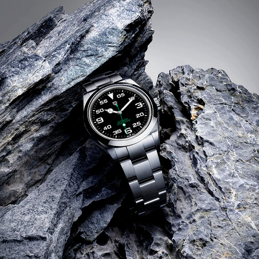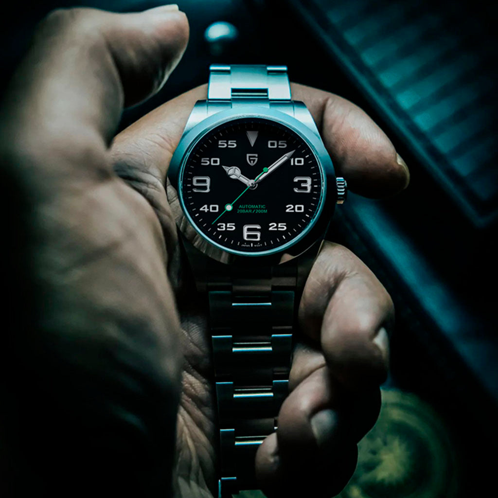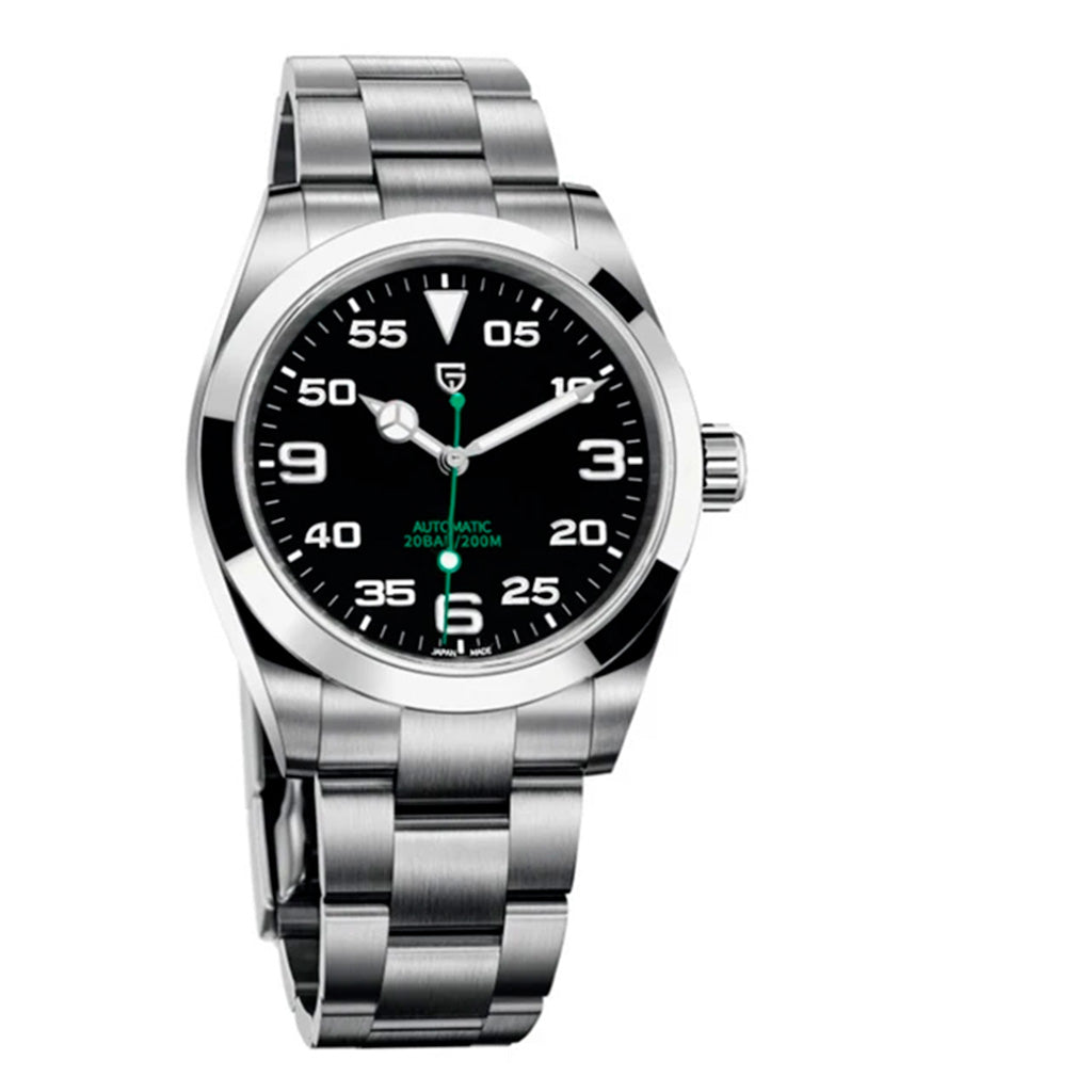 O mecanismo Seiko NH35 é um movimento automático de alta precisão, conhecido por seu desempenho excepcional em termos de precisão e confiabilidade. O Pagani Design Siena Silver Black equipado com o movimento NH35, oferece uma precisão e confiabilidade excepcionais.
