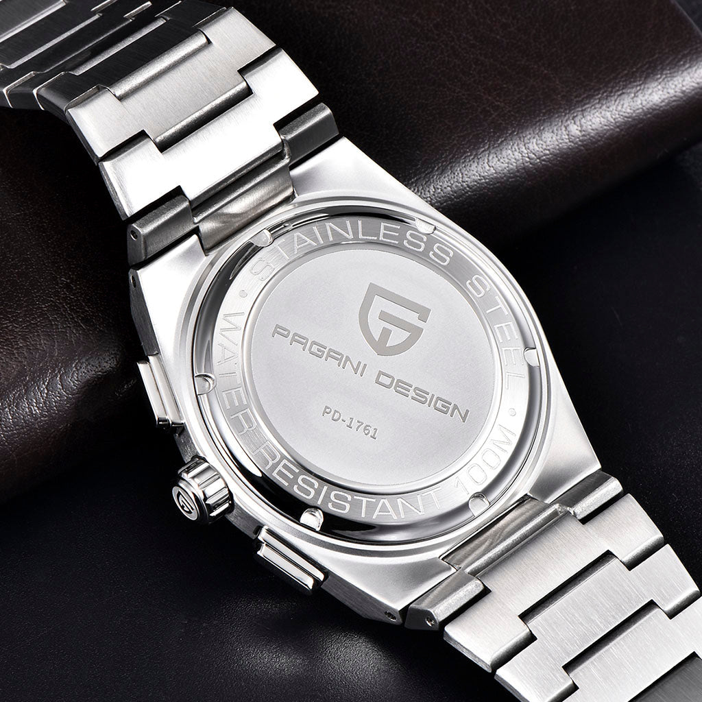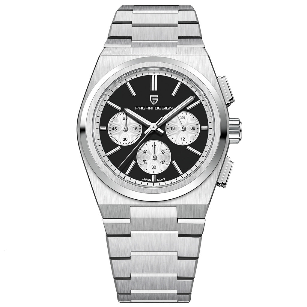 O movimento Seiko VK63 é conhecido por seu desempenho excepcional em termos de precisão e confiabilidade. O Pagani Design Tide Black equipado com o movimento VK63, possui uma operação suave e precisa do cronógrafo.