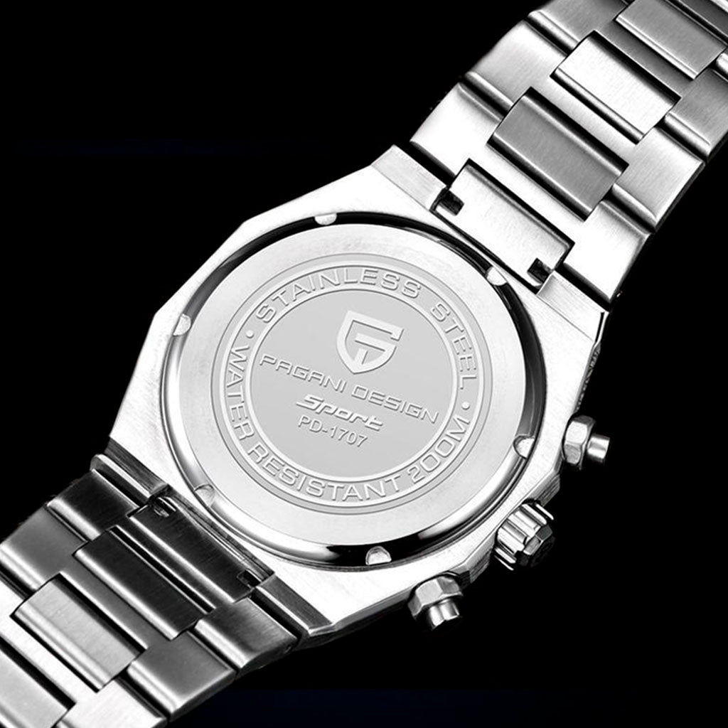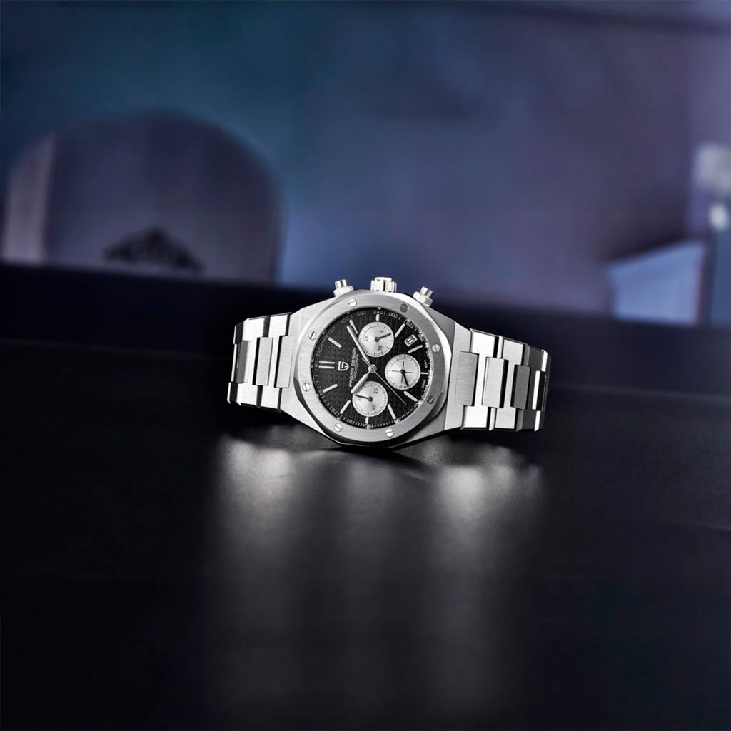 O movimento Seiko VK63 é conhecido por seu desempenho excepcional em termos de precisão e confiabilidade. O Pagani Design Track Black equipado com o movimento VK63, possui uma operação suave e precisa do cronógrafo.
