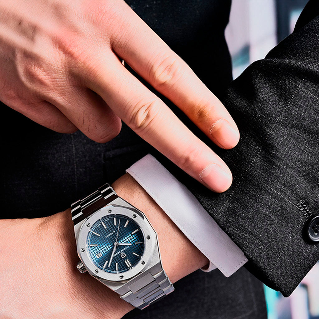 The Pagani Design Vault Blue bracelet is carefully crafted from premium materials, combining the strength of 316L stainless steel with a lightweight feel. It delivers unparalleled comfort and a unique sensation of wearing a watch that feels almost imperceptible on the wrist.