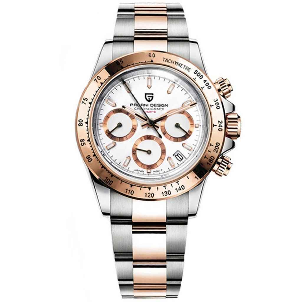 The Seiko VK63 movement is renowned for its exceptional accuracy and reliability. The Pagani Design Veraci White Gold, equipped with the VK63 movement, delivers superior precision and functionality.