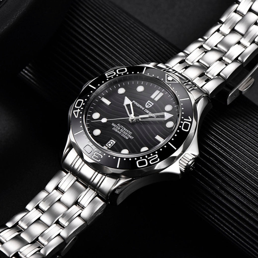 O relógio é resistente à água até 200 metros, proporcionando confiança e tranquilidade durante atividades aquáticas. O sistema de vedação exclusivo da Pagani Design garante que o relógio seja hermeticamente fechado para proteger o mecanismo de danos causados pela água e outros elementos.