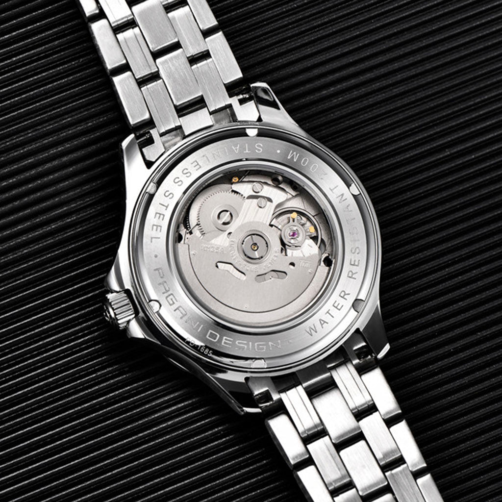 O movimento Seiko NH35 é conhecido por sua precisão e confiabilidade. O Pagani Design Veracius Pulseira de Aço equipado com o movimento NH35, possui uma impressionante reserva de marcha de aproximadamente 48 horas.