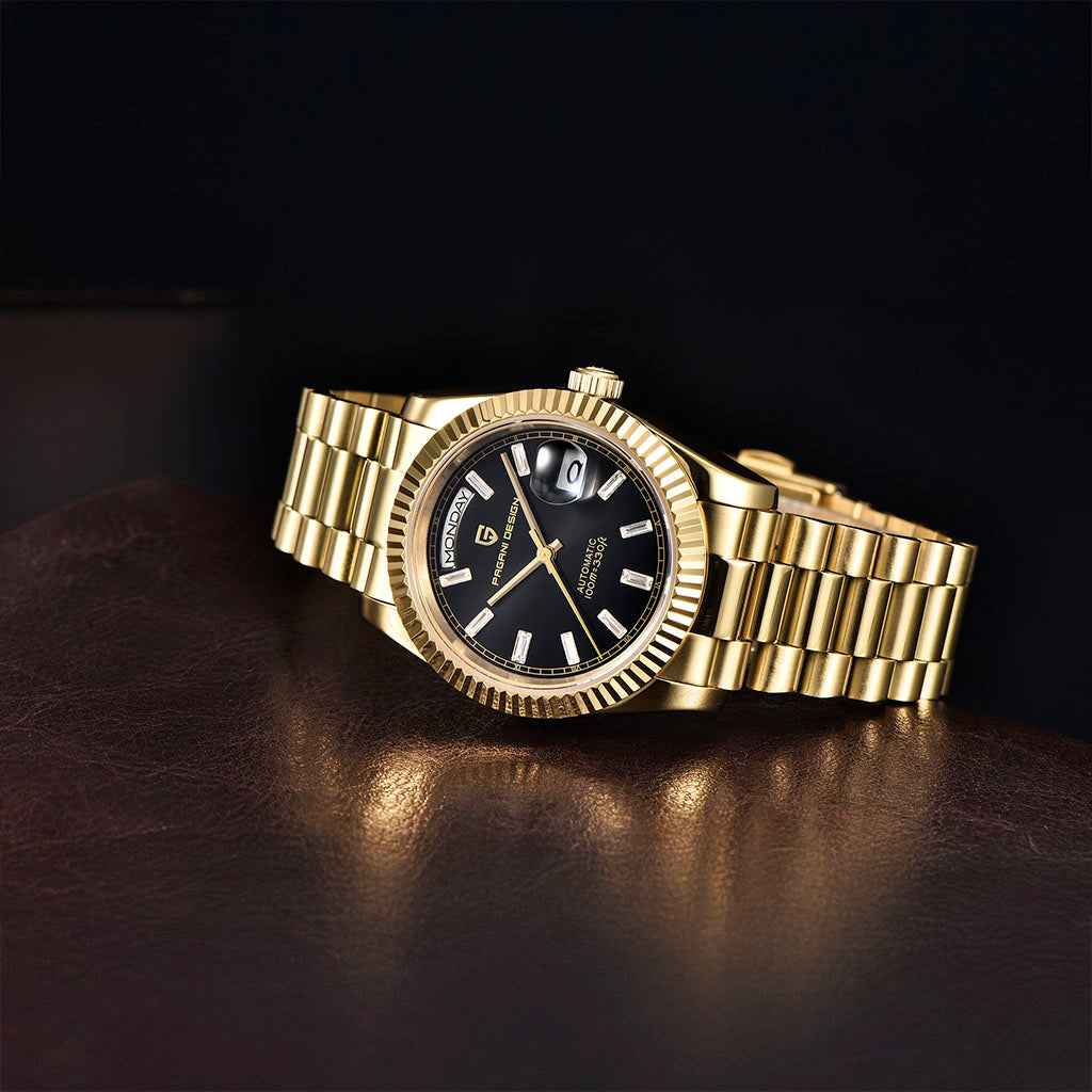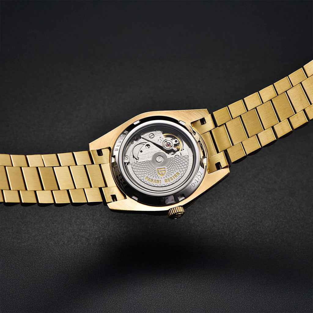 Purchase your Pagani Design London Gold from our website and receive our exclusive packaging. This watch is the perfect choice for those seeking quality and sophistication. Invest in the Pagani Design London Rose Gold and discover excellence in every detail.