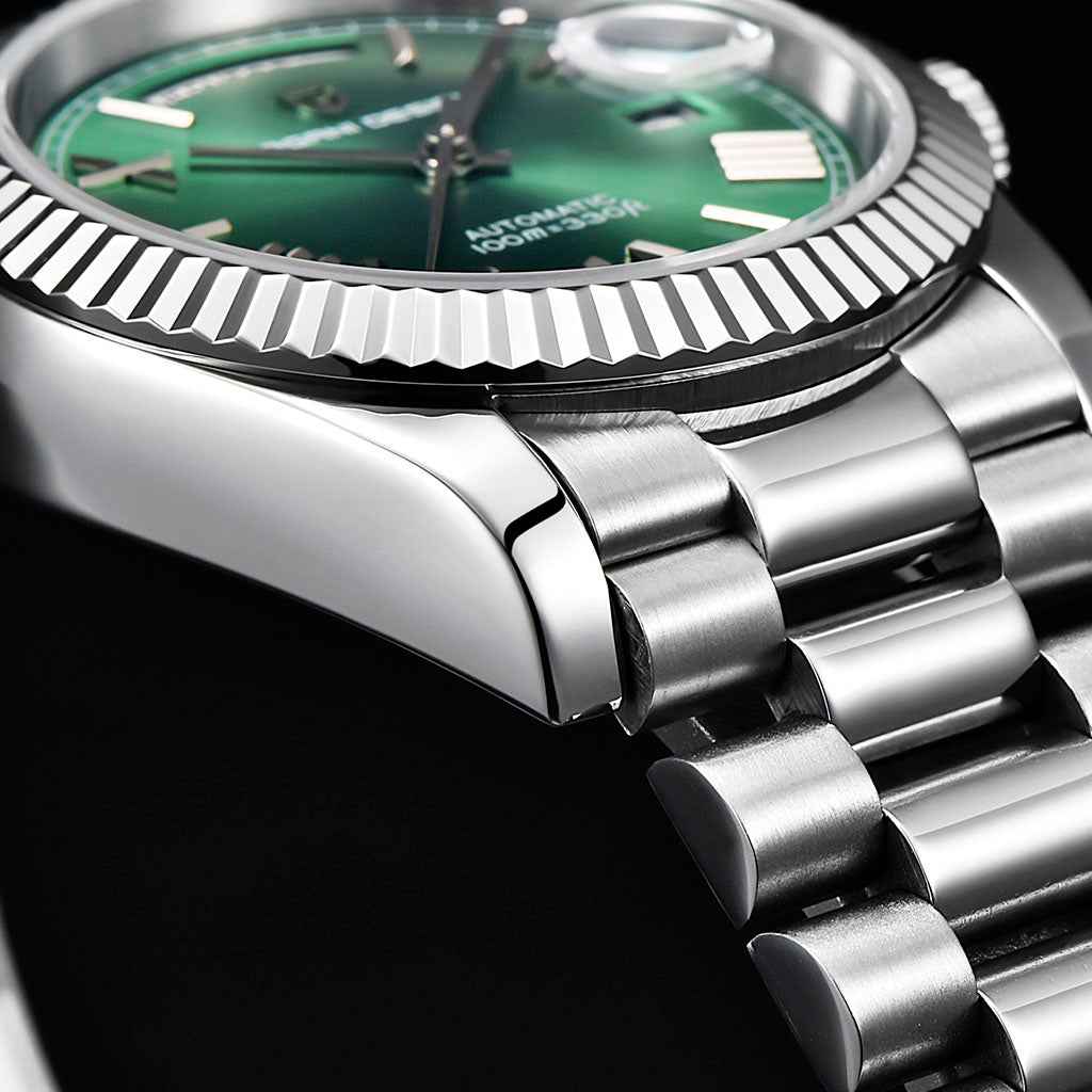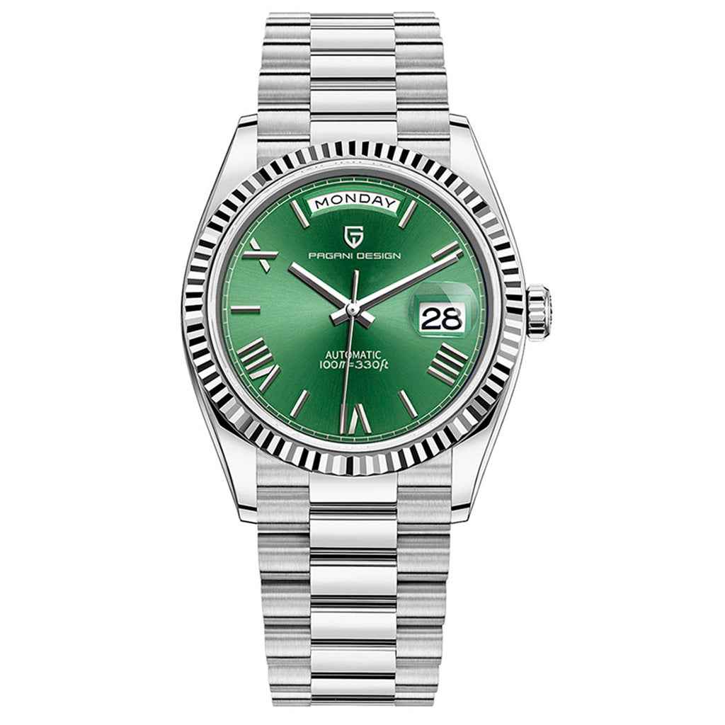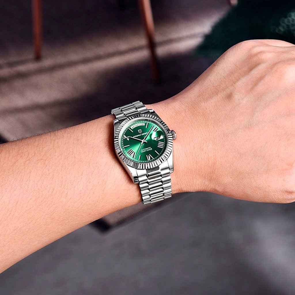 Purchase your Pagani Design London Green from our website and receive our exclusive packaging. This watch is the perfect choice for those seeking quality and sophistication. Invest in the Pagani Design London Rose Gold and discover excellence in every detail.