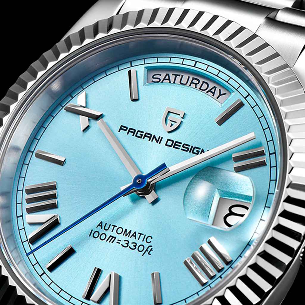 Purchase your Pagani Design London Sky Blue from our website and receive our exclusive packaging. This watch is the perfect choice for those seeking quality and sophistication. Invest in the Pagani Design London Sky Blue and discover excellence in every detail.
